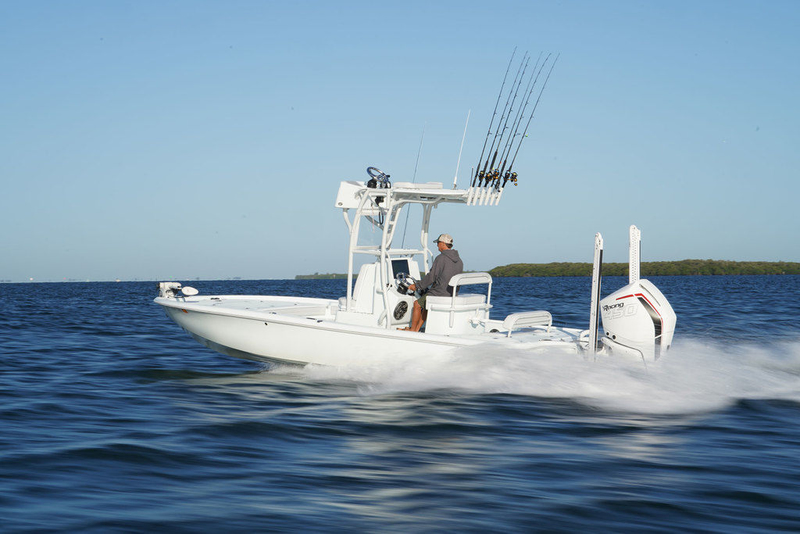 The 24 Carbon Elite boasts a sleek, speedy design and is purpose-built for shallow-water fishing. The features on this versatile bay boat include front and rear casting decks, a comfortable console, 50-gallon livewell, and efficient construction with carbon fiber and vacuum-bagged technology for industry-leading performance.