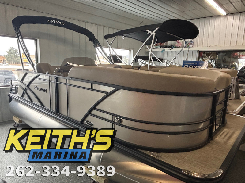 This stylish 18' pontoon from Sylvan offers comfortable seating and unique open space deck areas. With this exceptional value, great days on the water are well within reach. Comes with a 20hp (40HP, 60HP also available). This Sylvan 818 CRS also includes a bimini sun top, stainless steel ladder, plenty of storage and more! At www.keithsmarina.com we offer many other engine sizes, please let us know what engine you're looking for and we can get you pricing. Boat priced with a standard vinyl floor (teak weave shown is additional).