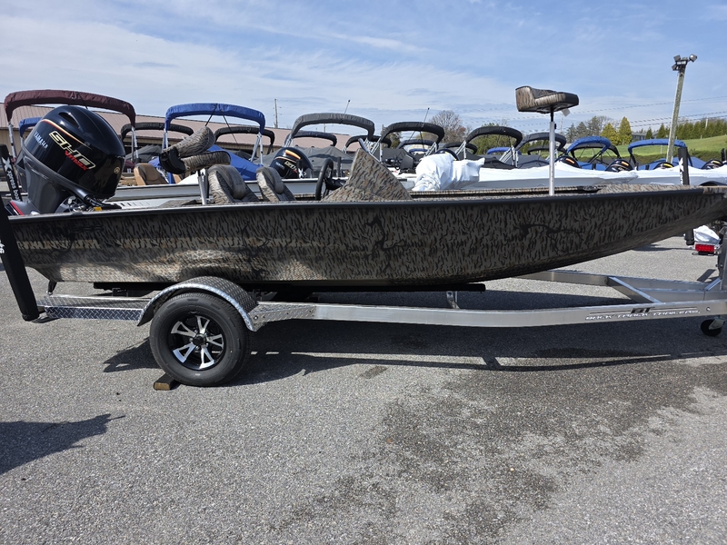 2026 Xpress H18 Bass. 18’ bass boat. Duck boat package, camo paint & camo Seats. Seadek in cappuccino. Seadek in cockpit.