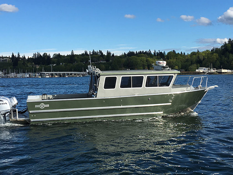 Advertised price includes: Twin Yamaha F300 NSB outboard motors, with a factory stainless steel props, Cabin Layout #2 (Suspension seat at the helm, a reversable dinette bench, starboard bench, galley, and stand up head), Aft station steering, Welded boarding ladder, welded rub rails, a washdown pump, shore power, wallace heater, 15 Rod rocket launcher with deck lights, downrigger pads on the stern rails, full side paint, and a 15000 lb capacity tri-axle aluminum I-beam trailer. Call today for a custom quote!