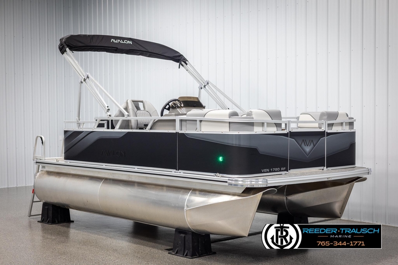 Introducing the 2025 Avalon VEN RF, a stylish new pontoon boat designed for ultimate comfort and performance. Measuring 17 feet in length and 8 feet in beam, this compact vessel guarantees a stable and smooth ride, perfect for relaxed outings on the water. Its eye-catching black matte finish adds a sophisticated flair, making it a true standout.