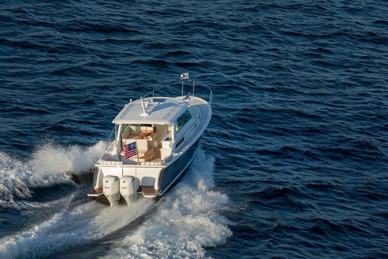 IMMEDIATE DELIVERY! Equipped with twin Mercury Verado V10 engines, each boasting 400hp, this vessel features a Joy Stick and Skyhook for effortless maneuverability. Its striking Shark Grey hull and glazed windshield enhance both aesthetics and performance. With a full crew, fuel, and water, she easily reaches speeds exceeding 40 knots. Recognized as the Best New Powerboat under 35' and a People's Choice Award winner at the Newport International Boat Show, the 340 sets a high standard in the boating world. Designed specifically for outboard propulsion, her hull includes a standard bow thruster, enabling faster cruising and top speeds compared to traditional single diesel engines. The cockpit and helm deck are perfect for entertaining, featuring an aft-facing seat that transforms into a U-shaped dinette or an additional berth. With optional 7.5 kw diesel generator, helm deck and cabin A/C, along with a spacious island berth and split head and shower, this Back Cove is ideal for both leisurely day trips and overnight adventures. Contact us to schedule an inspection of the stunning 340! She’s a true showstopper, whether underway or docked. Please note that the decor photos are of a previously sold 340, accompanied by brochure images.