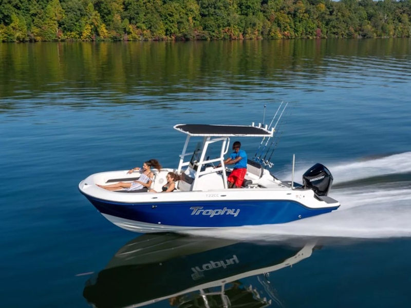 The T22 offers the perfect balance of fishing adventure and cruising comfort. Highlights include a deep V-hull a broad bow for casting or lounging comfortable aft bench seat livewells plus a dry-riding interior ensures an enjoyable ride to your favorite fishing spot or waterfront restaurant. Anglers and non-anglers alike appreciate the easy cleanup of the self-bailing cockpit and the convenience of an enclosed head compartment at the center console. Optional equipment like a ski tow pylon make the T22 even more versatile.