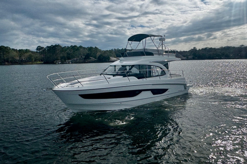 Fresh on the market and available for instant delivery, this boat is equipped with all the amenities for cruising or tackling America’s Great Loop! At 11 meters in length, the flagship of the Antares line exemplifies the ideal family cruiser. Its sleek, modern design emphasizes spaciousness, comfort, and safety. The flybridge of the Antares 11 FLY integrates beautifully with the boat's profile, offering an excellent vantage point to enjoy the excitement of outdoor boating.