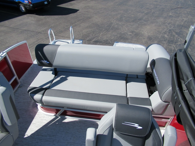 Introducing the all-new 2026 Bennington 22 SSB with the SPS Tritoon package, powered by a Mercury 150XL with hydraulic steering. This striking boat features a smooth panel in red with an anthracite stripe, an aft swing-back recliner, and stylish shadow grey vinyl. Enjoy a redesigned helm and windshield equipped with a Garmin Echo 5 GPS, along with premium Rockford Bluetooth audio for your entertainment. The boat also includes LED docking lights, convenient in-floor storage, and a tilt helm for added comfort. With a spacious 10ft Bimini top, reclining captain and co-captain chairs, an extended aft deck, a Lillipad ladder, and ski/tow capabilities, it's perfect for all your water adventures. A mooring cover and a tandem trailer with a spare tire are included for easy transport. For more information, contact Nichols Marine in Tulsa at 918-838-2500.