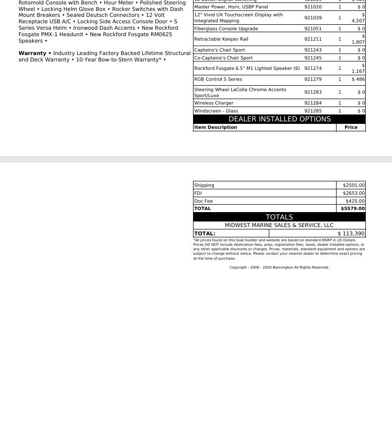 | Manufacturer | Bennington |