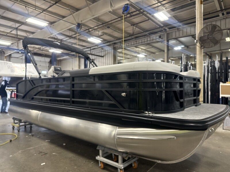 Introducing the 2026 Bennington 22SSB-SPS-Snap (TC) – a sleek and stylish pontoon boat designed for ultimate enjoyment on the water. This model features a striking textured panel in Gemini Black, complemented by the luxurious Blackout Package, which includes blackout logos and a refined black rub rail insert. The Ironwood Dash Accent adds a touch of elegance, while the Echomap 52CV provides advanced navigation capabilities. Enjoy convenient analog rocker switching and a wireless charger for your devices. With an in-floor storage system and the high-performance SPS Package that includes a 33-gallon transom direct fill, this 22-foot boat is built for adventure. Powered by a Yamaha 150 HP 4-Stroke Mechanical engine, it ensures a smooth ride with a 25-inch shaft. The midnight black canvas and an 8.5x10 black bimini top offer protection from the sun, while the Impulse Mineral Grey flooring and Leon Light Silver base vinyl create a stylish interior. The slate Simtex interior accents and comfortable mid-snap captain recliner furniture complete the luxurious experience. Get ready for endless fun on the water!