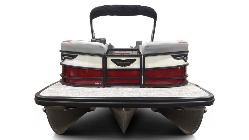 Introducing the 2026 Bennington 23MCSB-SPS (TC), a stunning pontoon that combines performance and luxury. Powered by a 150 HP 4-Stroke Mechanical engine with an internal hydraulic cylinder, this boat features a Yamaha Mechanical Pre-Rig for seamless operation. Equipped with a dual switch battery system and fuse, this vessel ensures reliability on the water. Experience ambiance with toekick lights and elegant sport furniture in a striking Zebrawood Matte Slate finish, complemented by smooth metallic white accents and a sleek midnight black canvas. Enjoy added comfort with lumbar lighting and a ski tow bar at the extended aft deck, protected by a black rub rail insert. The boat includes pop-up cleats both at the bow and aft for convenience, along with a smooth absolute red panel and shadow grey Veneto accents. The interior features an attractive absolute red Simtex accent and sport M trim, enhanced by Rockford Fosgate M1 lighted speakers and a stunning Valencia grey finish. The SPS Performance Package boasts a 33-gallon transom direct fill for effortless fueling, and the Blackout Luxe Package adds a touch of sophistication. With generous in-floor storage and a stylish steering wheel in Lacolla black, you'll also find rail-integrated headlights and striking black sport logos. The carbon fiber arch and master power panel, featuring a horn and USBP panel with a wireless charging dock, provide modern convenience. Stay in control with the 12" Vivid UX touchscreen display and digital switching with a 7" Vivid UX vessel control system. The captain's and co-captain's sport recliners ensure comfort, while the dual stern gate provides easy access. Finally, the elevated console with a pocket mythos offers a perfect blend of style and functionality.