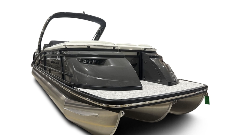 Introducing the 2026 Bennington 25QFBA-ESP, a luxurious pontoon boat powered by a robust 300 HP 4-Stroke V6 Yamaha engine with integrated steering. This model features elegant illuminated cupholders (8), exterior side lighting, and stunning underwater lights to enhance your evening cruises. Enjoy ambient lighting with toekick lights in two lengths (37" and 62"). The sleek design showcases blackout logos, a console in Ice White, and a sophisticated Zebrawood Matte Slate finish. Comfort is paramount, with plush base pillowtop diamond-stitched upholstery. The black tower/arch color matches perfectly, featuring a power-cladded sport arch (without speakers). Equipped with dual batteries and a switch for easy management, this boat also includes the ESP Performance Package with a generous 73-gallon fuel capacity. The Valencia Grey color adds a touch of elegance, while the removable gate seat and stowable 54" aluminum ski pylon cater to your recreational needs. The smooth paneling in anthracite, complemented by the anthracite canvas and perforated Mythos Grey interior accents, creates a chic aesthetic. Features also include an embroidery package in Absolute Red, a Yamaha DEC control box, digital throttle panel, in-floor storage, and cutting-edge digital switching with a 7" Vivid UX vessel control. Stay informed with the impressive 12" Garmin multi-function display and a 12" Vivid UX touchscreen display, plus enjoy a premium stitched helm shroud and RGB console dash lighting for an all-around exceptional boating experience.