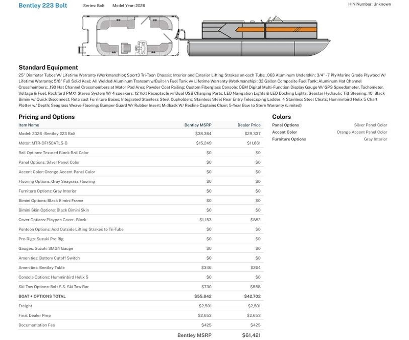 | Manufacturer | Bentley Pontoons |