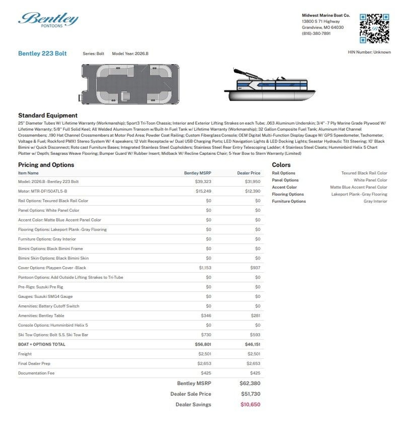 | Manufacturer | Bentley Pontoons |