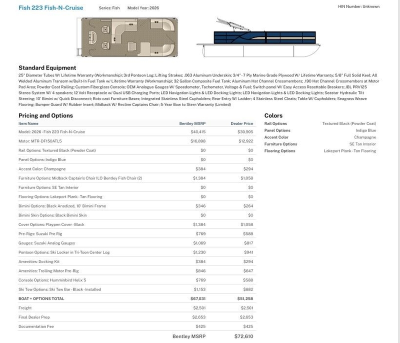 | Manufacturer | Bentley Pontoons |