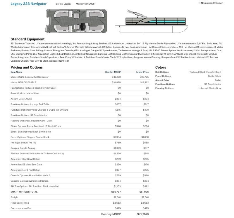 | Manufacturer | Bentley Pontoons |