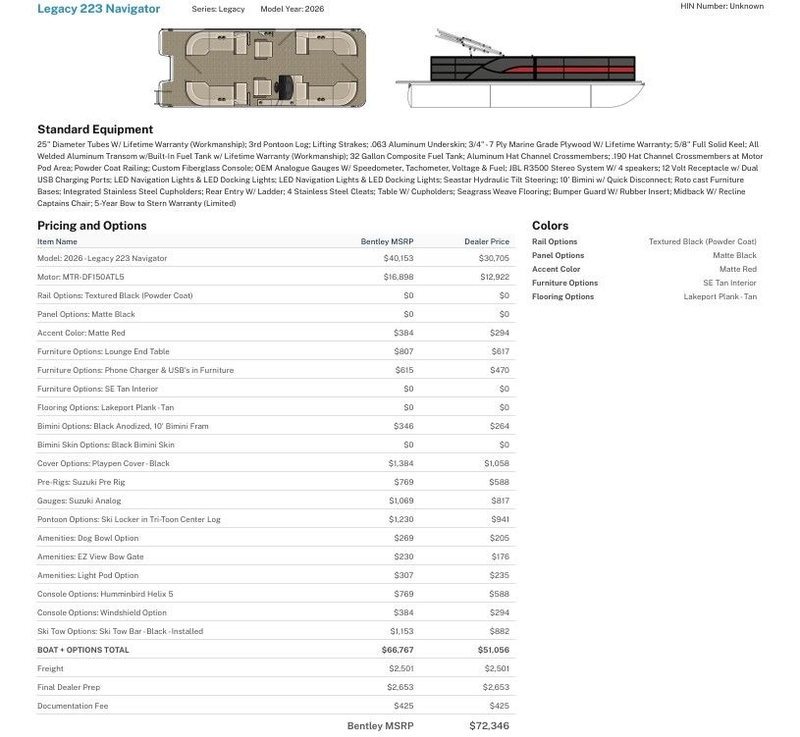 | Manufacturer | Bentley Pontoons |