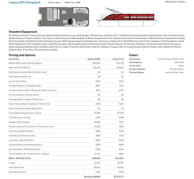 2026 Bentley Pontoons Legacy 223 Swingback DF150ATXSS5