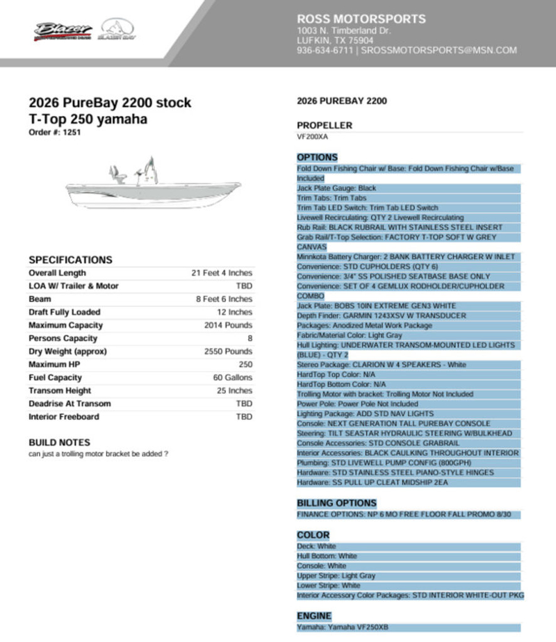 Blazer Boats PureBay 2200 2026