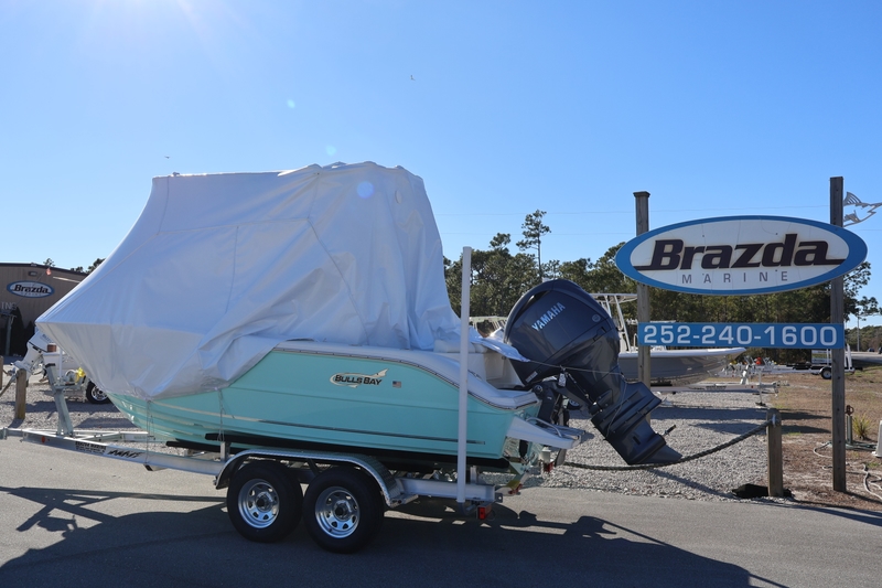 2026 BULLS BAY 200CC W/ F150XD YAMAHA FOURSTROKE ENGINE AND ROAD KING ALUMINUM TRAILER. INCLUDES ALL STANDARD FEATURES PLUS THE FOLLOWING FACTORY INSTALLED OPTIONS: USCG APPROVED SAFETY PACKAGE, SAEFOAM GREEN HULL COLOR, T-TOP PACKAGE, BOW CUSHION, DUAL BATTER SWITCH, SWIM PLATFORM, TRIM TABS, FORWARD FACING BACKREST, 9 INCH GARMIN W/ TRANSDUCER, CLARION STEREO W/ 4 SPEAKERS, LEAN POST BACK REST.