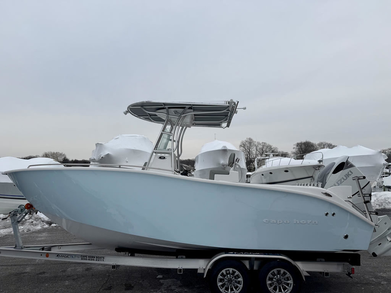 Read LessIf you think it looks good, wait until you drive it. One look into the huge floor plan of the all-new Cape Horn 22 and you realize it is something special. Flip up the front seat and you can step down into the center console with 5 ‘ 4? of headroom and standard manual flush toilet. The huge 40 gal. live well behind the leaning post will make sure you never run out of bait. The aft cockpit boasts one of the largest workstations of any other in this size class. It has plenty of room for multiple anglers to go toe to toe without getting in each other's way. The removable cooler with top cushion is a nice optional addition if more seating or cooler space is a must. Add the front bow cushion to create a relaxing spot when you're ready for a break. All veteran anglers will appreciate the 27 rod holders located where you need them. Rod boxes in the sides allow for (4) more rods to be in storage. The step-up in the bow makes throwing a cast-net easy and also adds the space for a huge storage box forward.