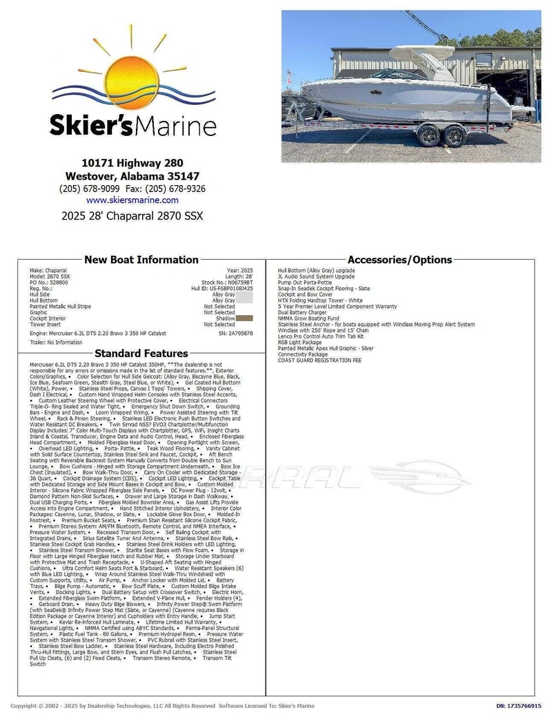 | Engine Model | Mercruiser 6.2L DTS 2.20 Bravo 3 350 HP Catalyst |