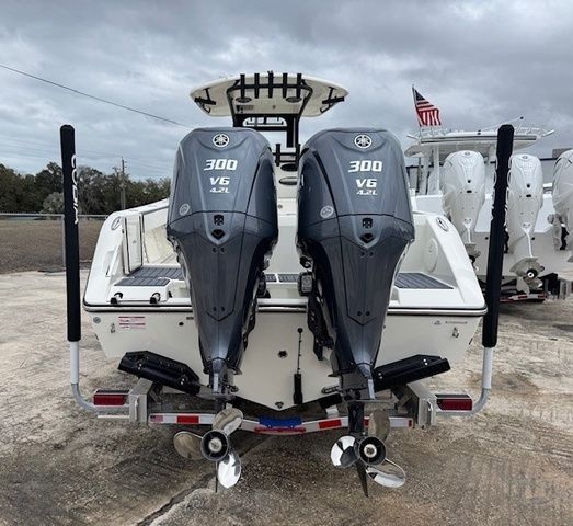 Introducing the 2026 Cobia 285 Open, a premium vessel featuring a striking Haze Grey boot stripe and powered by twin Yamaha F300XSB engines, delivering a robust 600HP. This boat is equipped with the advanced Helm Master EX DES system for effortless twin engine control, complemented by digital electric steering for enhanced maneuverability. The design includes a hardtop with a sleek matte black powder coating and an integrated frame and glass windshield, alongside a sun shade for added comfort. Enjoy the convenience of a premium helm seat with a tackle center and sliding cooler, and a bow cushion package for lounging. The faux teak decking in grey and black adds a touch of elegance, while practical features like a deep drop setup, rod rack, and VHF radio enhance your fishing experience. Stay connected with a Garmin Dual GPSMAP 1243xsv and enjoy top-notch audio with JL Audio speakers throughout. The windlass system is equipped with a 300ft line upgrade and offers both rope and chain options, ensuring you're ready for any adventure. Additionally, the boat includes underwater lights for a stunning evening ambiance, while the Seakeeper Ride Trim Tabs ensure a smooth ride. Experience the ultimate in boating with the Cobia 285 Open.