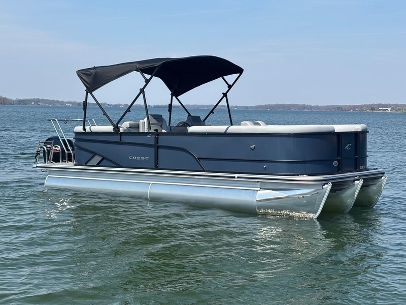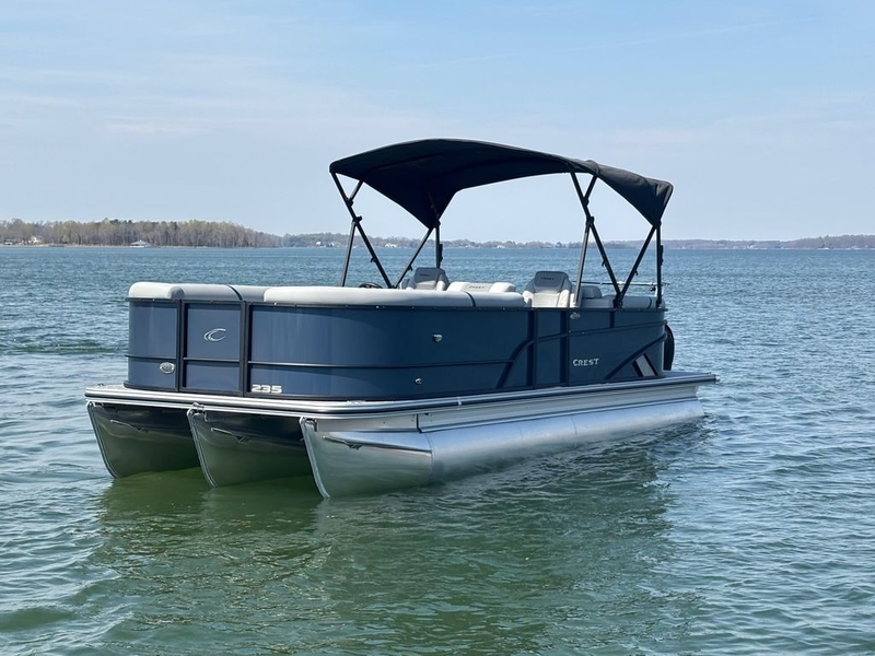 Read Less2026 Crest Conquest 235 SLC featuring a 150 HP Mercury outboard and tritoon performance package. Equipped with XPA steering, Audio Package, manual bimini top, dual battery switch, Eagle 5 GPS, mid-ship entertainment table, mooring cover, ski/tow bar, and RGB lighting