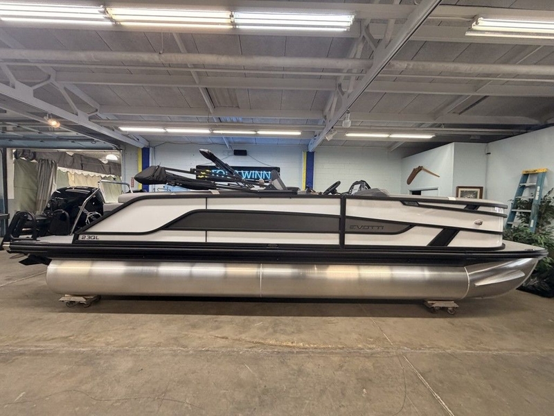 2026 Evotti 523QL with 200XL Mercury. Includes ski tow bar, USB chargers throughout, lockable glovebox, windscreen, rail mounted docking lights, 6 Clarion Speakers, adjustable height pedestal captain, reinforced bow panels, dual battery, Garmin 943 w/ 5' gauges, (6) Clarion speakers w/ Clarion head unit, power steering, & fender caddy (2).