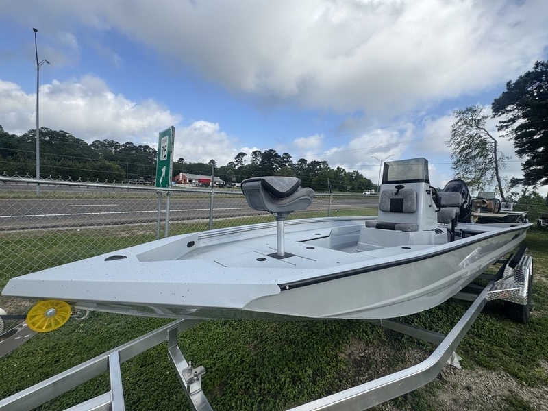 Our widest front deck.Stylish rigging, impressive floor layout, increased speed, and an improved ride. We built this hull from 0.160 aluminum, unheard of for bay boats that normally have 0.125 hulls. To move this large boat, we built it on a 14-degree pad hull that lifts the boat, provides a dry ride, and allows the boat to reach higher-than-normal speeds.