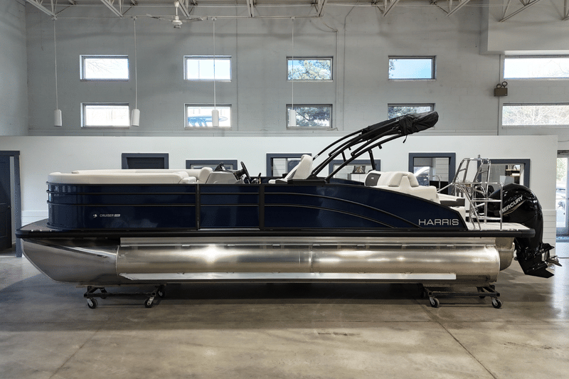 The 2026 Harris Cruiser 230 Heritage Edition (Stock #217561) delivers refined pontoon styling, upgraded performance, and versatile comfort in a 23-foot layout built for entertaining and watersports. Finished in striking Midnight Blue Metallic with Black Powder Coated fencing, this Cruiser features the popular SLDH layout with dual helm chairs and a rear-facing lounger for flexible social seating. Powered by a Mercury 150L EFI 4S and equipped with a performance-focused tritoon configuration, this boat is available now at MarineMax Lake Norman.