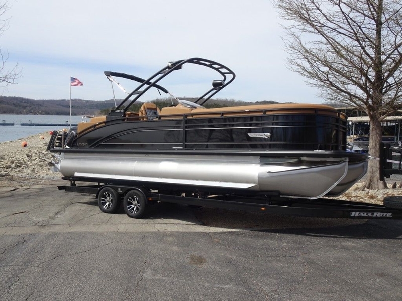 This is a new 2026 Harris Solstice 250 CWDH Tri-toon in Black Sapphire and Luxe Chestnut Brown (Cool Touch) Interior. It is powered by a Mercury 300hp Verado 4-Stroke. It also has the following options: