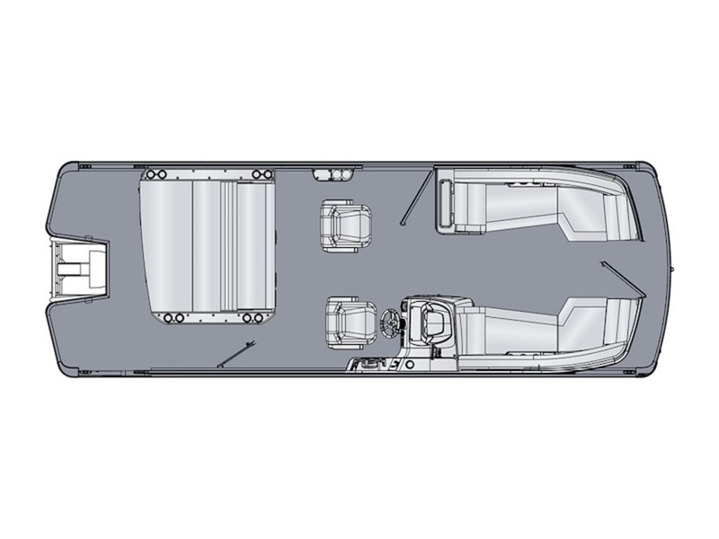 - Tri-toon chassis with 27' center tube, lifting strakes, and in-floor storage