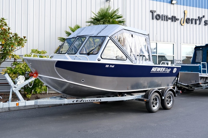 For families looking to enjoy fishing trips with peace of mind, the Hewescraft ProV is the perfect vessel. It features the widest extended transom in its class, ensuring a secure and spacious fishing cockpit, complete with a full-height transom for added safety. Unlike other boats that merely promise safety and adaptability on various waters, the ProV truly excels. Its distinctive design—including an extended transom, comprehensive gunwales, and a deep-V hull—makes it an exceptionally safe and versatile multi-purpose boat. This model is equipped with a Yamaha F150XB, a welded treadplate anchor guard, zinc anodes, bow rails, a canvas top with a rear fish curtain, stern rails with downrigger brackets, gunwale rod holders, front bellows suspension seats, rear 21" storage seats, Seastar hydraulic steering, a boarding ladder, electric trim tabs, a wash down system, dual wipers, a transom insulated fish box, dual batteries with a switch, recoverable flotation, and an extruded reverse chine. It comes with an EZ Loader trailer featuring disc brakes. For more information, contact Tom-n-Jerrys Boat Center at (360) 466-9955, email us at [email protected], or visit tomnjerrys.net.