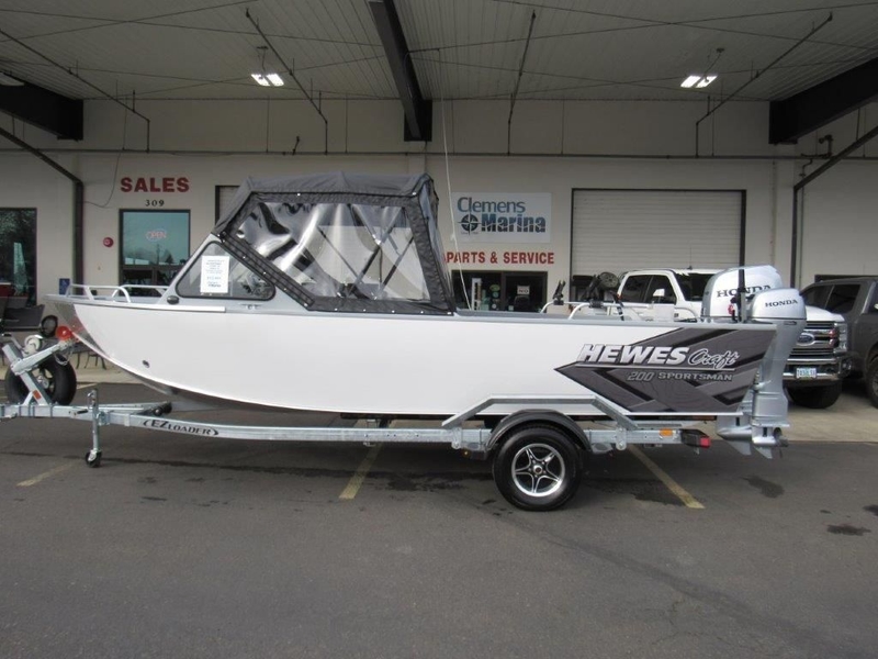 Introducing the 2026 Hewescraft 200 Sportsman, now in stock! This versatile boat, with stock number HEW17933K526, is powered by a reliable Honda 100 and 9.9 engines. It comes equipped with a comprehensive fisherman's top, a durable diamond plate bow guard, and full side vinyl for added protection. The boat features bow rails, a bow fish box with a livewell, and stern rails complete with downrigger mounts. It also includes a ski pole with a bait board, a swim step with a ladder, and a battery with a switch. Additional amenities include a wash down pump, navigation lights, dual wipers, a bilge pump, seating for two on storage boxes, two bench seats on boxes, and four Scotty rod holders. To top it off, it comes with a single axle EZ Loader trailer featuring load guides, a swing tongue, a spare tire, and a carrier.