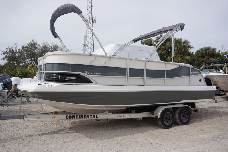Introducing the 2024 Hurricane FD 2360 RE3, a stunning boat that combines functionality and style. This model features a sleek Shadow Gray canvas boat cover and a silver aluminum double canopy, complete with a changing room and curtain in elegant black. Under the hood, you can opt for a powerful engine with over 150 HP for an additional $300 if you choose the Verado.