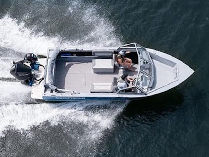 - Single piece hull sides with upswept bow and wide formed gunnels