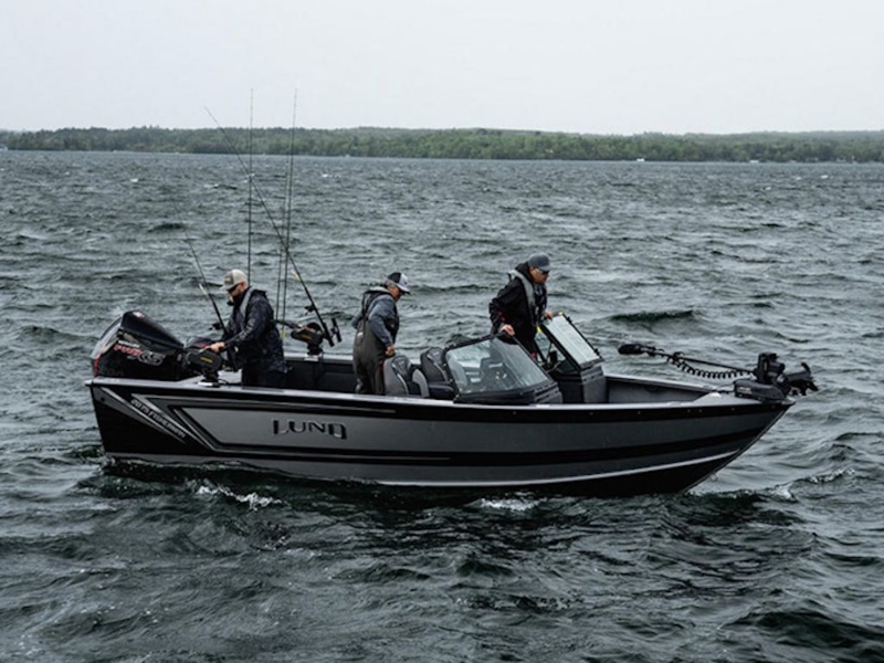 BIG WATER SALMON FISHING BOATThe Lund Fisherman's wide-open cockpit is specifically designed as a trolling fishing boat. If you're fishing the great lakes and trolling for salmon, walleye or trout, this full windshield has it all.