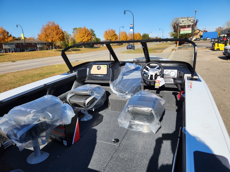 This one is powered by a Mercury 150xl PRO XS with stainless steel propeller. The Factory installed options include: Hydraulic Steering, Air-ride pedestals, Under Console Drawers, Full LED cockpit lights with dimmer, Travel cover, Sport Top, 3 Bank Minnkota Battery Charger, and Kicker Fuel Line. The Trailer Includes: Lund Guard Paint, swing tongue, disc brakes, load guides, ratchet tiedowns, Spare tire with bracket, and the Bow Step Ladder for EZ entry. Engine Type: In-Line