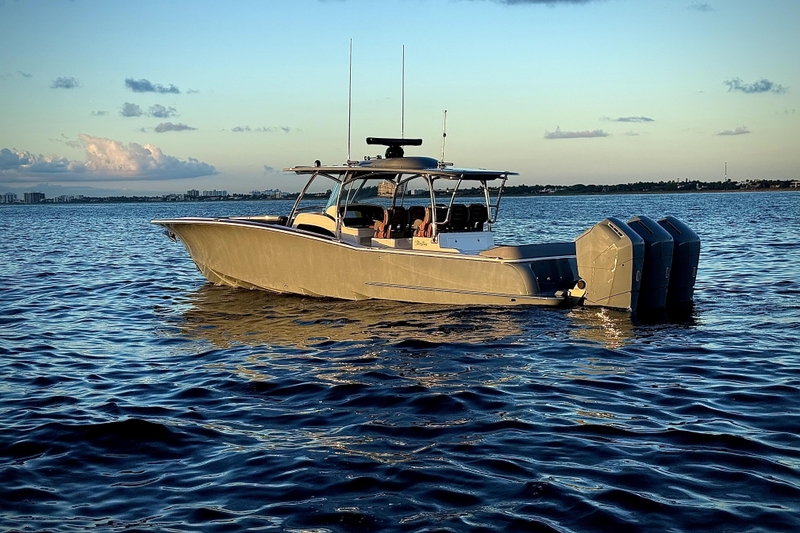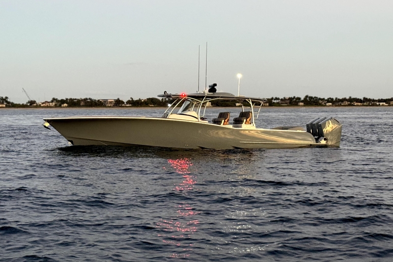 Ready for Immediate Delivery! The 43 Mag Bay is a standout vessel, celebrated for its unmatched craftsmanship, superior fit and finish, and an exceptional ride. This particular model features Mag Bay’s exclusive stainless-steel T-top frame, along with a comprehensive selection of premium options. If you're in search of a boat that truly outshines the competition, this one is a must-see. Below is a detailed list of features and upgrades. Seize the chance to own this extraordinary Mag Bay 43 without the wait of a new build. Equipped with Triple Mercury 600 V12 Verado engines, Custom Awlgrip G1344 Dark Grey engine paint, Mercury Joystick Steering system, bow thruster, and Seakeeper 4 gyro stabilizer. It includes a 1" stainless bow towing eye for tow-behind tender setup, a Garmin premium electronics suite with three 24" multifunction displays, integrated radar, sonar, chartplotter, and engine data, all showcased on a Glass Dash acrylic backing. Additionally, it features an activated Starlink High Performance system, Sionyx Nightwave digital night vision, Lumitec Razor LED lightbar on the hardtop, Lumishore color-changing underwater lights (pair), and Lumishore accent lighting on deck. Enjoy LED lighting inside lockers, a full glass windshield, helm air conditioning, a hand-painted faux-teak helm pod, Edson teak steering wheel, faux-teak bow table, faux-teak cap rail, and interior countertop package. Other highlights include a dive door with integrated dive handles, tackle tray storage behind the backrest, aft wraparound seating, coil-wrapped mezzanine refrigerator, teak trim on helm and bow seating, an air-conditioned cabin, teak flooring in the cabin, combo fridge/microwave, hot water heater, and a freshwater console shower. Experience luxury with double diamond-stitched upholstery, an Awlgrip G1344 Dark Grey hull, and a hardtop painted in Awlgrip G1344 Dark Grey, complete with a stainless 1" bow towing eye for tender use.