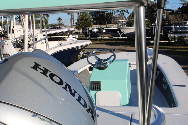 At 17 feet, this center-console skiff gives you plenty of deck space for fishing, cruising, or hauling gear without feeling bulky. The Seafoam hull stands out on the water — crisp, classic, and sharp without being flashy — and the center console layout keeps the deck open and functional, giving you room to move and fish with confidence.