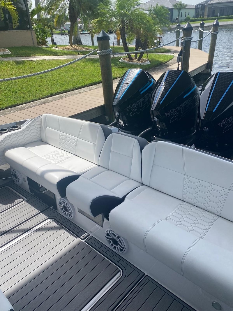 Imagine driving a sports car on water—this is precisely what the Nor-Tech 450 Sport offers. Its exceptional handling rivals that of any sports car, and with the choice of quad or quint Mercury motors, your craving for speed will be more than satisfied. Opting for quint engines will deliver breathtaking acceleration that will get your heart racing.