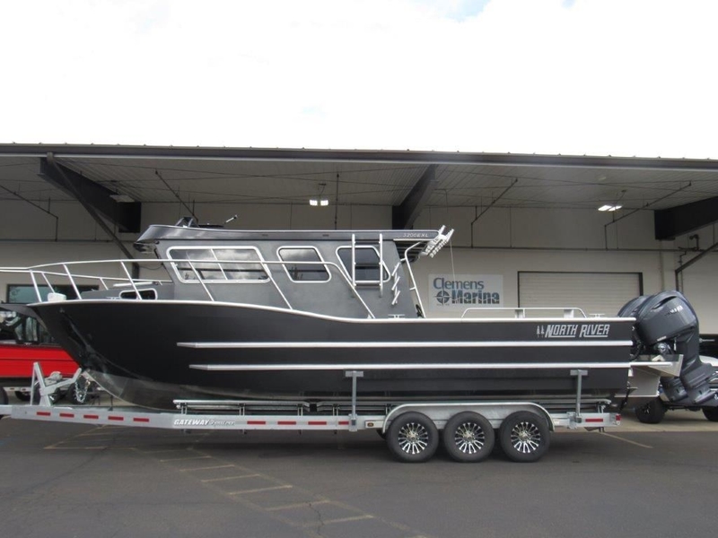 Introducing the 2026 North River 3200EXL Endurance, now in stock (Stock #NRB32010J526). This exceptional boat features a spacious full pilot house complete with an Alaskan bulkhead and a sliding door for easy access. The bow is equipped with a pulpit and windlass, while custom full-length bow rails provide both safety and style. Designed for performance, it boasts a fully extended transom compatible with 30" engines, including a kicker bracket, walk-through transom door, transom fish box, and bait box. The stern is reinforced with dual downrigger mounts and additional fishing amenities, including an in-floor center fish box and side-mounted fish boxes with Whale Gulper pumps. Convenient floor flush mount cleats and a rooftop rocket launcher enhance functionality, accompanied by six extra rocket launchers welded to the sides and side-mounted net holders. A rooftop ladder and dual rub rails add practicality. The boat is outfitted with in-floor provisions for a bait tank and outrigger mounting plates for blue water fishing adventures. The paint extends to the waterline, while an aft steering helm offers plano storage. Safety features include dual bilge pumps, electric trim tabs, windshield wipers, navigation lights, LED deck lights, and aisle way lights. Power up with shore power connected to a 4-bank battery system, and enjoy fresh and raw water washdowns. Inside, you'll find three Mariner suspension seats, a convertible dinette with dual benches, and a bathroom equipped with a toilet. Storage is ample with a 48" cabinet featuring drawers and a countertop sink. The boat comes with a triple axle Gateway Channel trailer, complete with electric over hydraulic brakes, load guides, and a spare tire with carrier.