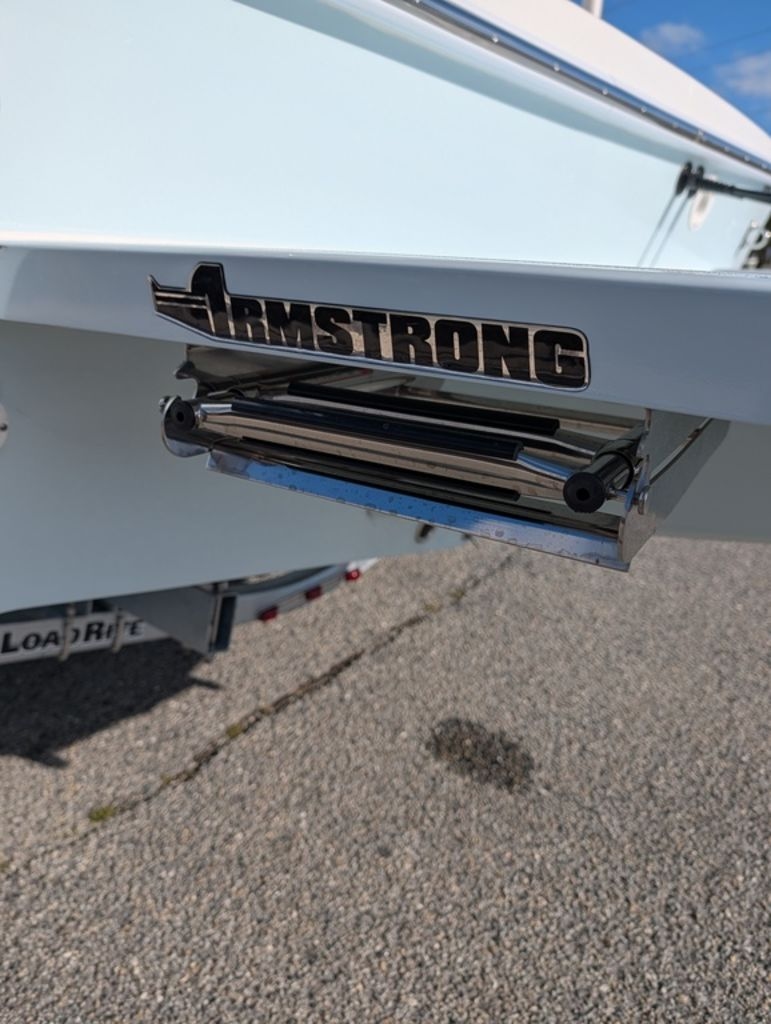 2100 Privateer in Ice Blue with white interior, custom built hard top with white powdercoating, custome ice blue stitching in upholstery, upgraded rod/cup holders, Armstrong Bracket with swim ladder, upgraded white rub rail with stainless insert, upgraded livewell leaning post with seat, forward U-Shaped seating, upgraded SeaStar hydraulic steering, Atlas 4' jackplate, dual batteries with switch, and switch panel.