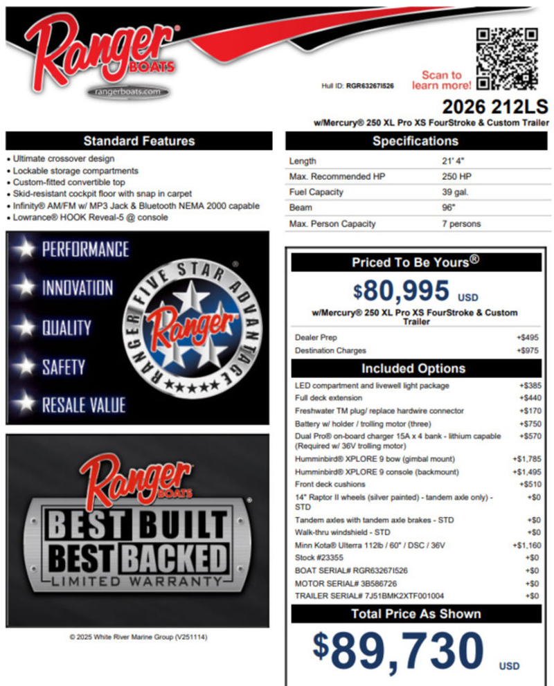 Ranger Boats 212LS 2026