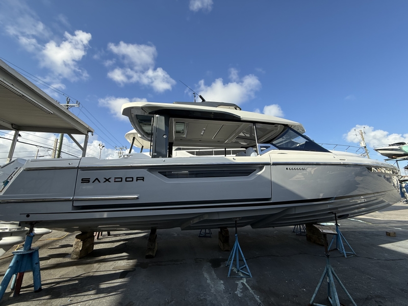 Step aboard this new vessel with gleaming Saxdor design, known for its premium quality and attention to detail, ensuring a sophisticated boating experience.