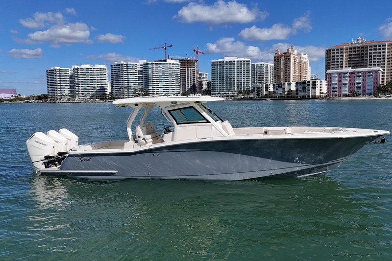 Contact us today for more details or to arrange a private showing! Our S-Class (luxury models 33' and up) epitomizes the pinnacle of luxury, akin to high-end automobiles. The 357 LXF is expertly crafted using advanced Epoxy Infusion Construction and top-tier dual Scout Stepped Hull Technology, paired with an exquisite array of features and technologies, making it the premier choice for discerning customers.