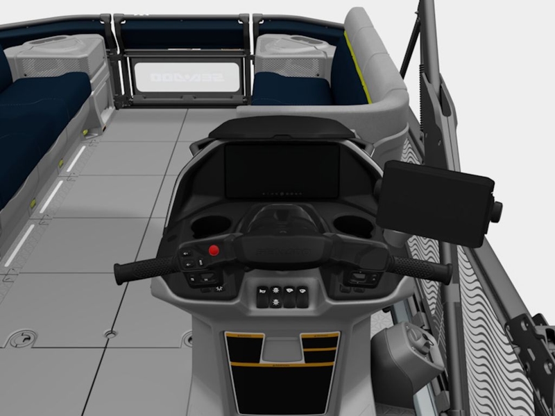 - 10.25-inch touchscreen display with depth finder pairs seamlessly with BRP GO! app to track your ride, waypoints and friends on the water. Additional 7-inch Garmin display offers pinpoint navigation with marine maps.