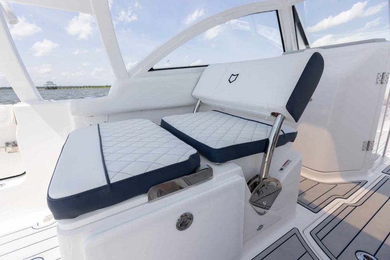 Finished in a stunning Full Hull Bahama Blue with white powder coating and a refined light gray interior, this 268 delivers upscale style that stands out in any marina.