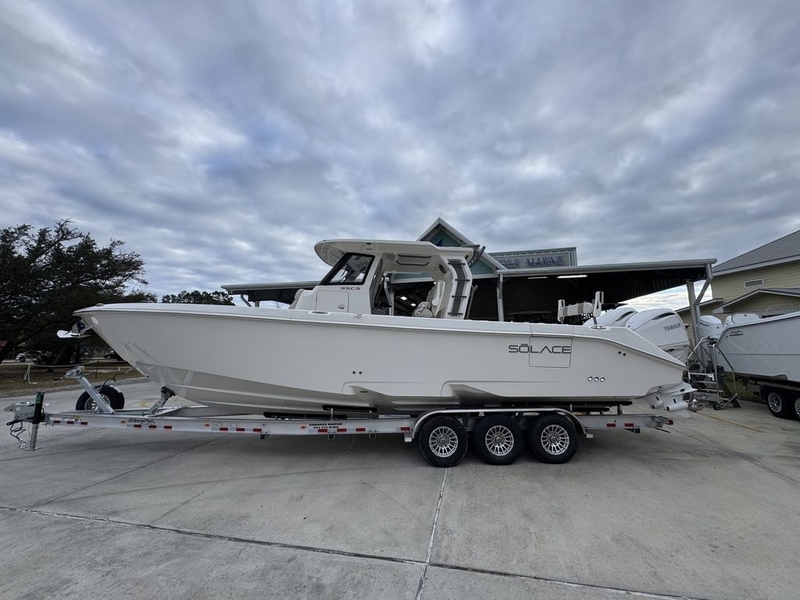 The latest addition to the SOLACE Center Console line, the 35CS! This model embodies the perfect balance of cutting technology, timeless design, and unparalleled craftsmanship. SOLACE Center Consoles feature a dual-step performance hull which provides a smooth dry ride with precision handling at exceptional speeds. With advanced fuel efficiency, you can go farther and stay longer, all while enjoying the meticulously curated functionality, comfort, and safety of this brand new model!
