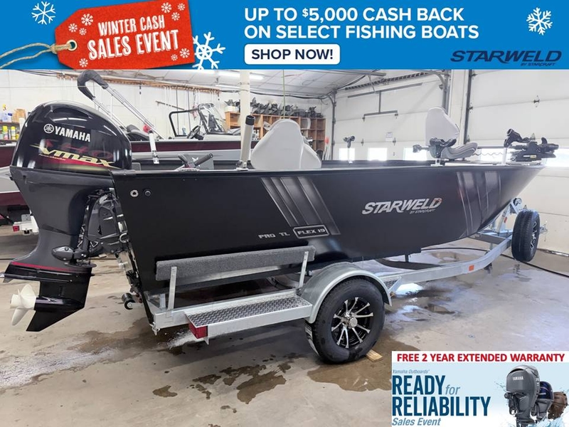 90 Yamaha SHO VMax (3 year standard warranty + free 2 year extended warranty before March 31), Minnkota Terrova I-Pilot 80# 24v, Humminbird Xplore 9, 3 Seats, Bert's Starter Pack Rod Holders, Livewell, Rod Locker, Custom Galvanized Trailmaster Trailer w/ Swing Tongue, Aluminum Wheels & Matching Spare Tire