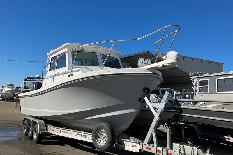 Introducing the brand-new 2025 28’ Steiger half-wall Chesapeake model, expertly designed for West Coast fishing enthusiasts. This innovative Half Wall configuration strikes the perfect balance between the spaciousness of a Miami version and the functional half bulkheads that accommodate rear station controls. Ordered specifically for the original owner, this boat is packed with premium features that are sure to turn heads. Although the owner has decided to sell and is willing to offer a discounted price akin to a dealer's demo boat, it’s important to note that it has never had electronics installed or been launched into the water. This presents a fantastic opportunity for you to customize the boat with your choice of electronics and amenities while saving significantly on one of the most sought-after models in the Steiger fleet. Factory-installed options include an Anchor Drum Roller, striking Kingston Gray Gel Coat hull with white striping, full interior bolsters, a bow thruster, fresh water cabin sink, underwater lights, fresh water wash down, marine head, Steiger pedestal seat on a port side storage box, port side tackle cabinet, battery charger, second station controls, spotlight, pop-up cleats on the transom, and second station bow thruster controls. Plus, it comes with a custom-built tri-axle heavy-duty aluminum trailer.