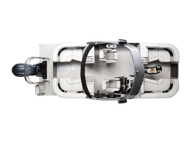 - Designed for comfort and control, the high-back bolstered captain’s chair is mounted on a raised platform for improved visibility. Attention to details, including SunCatcher branding, ensures durability and a refined look at the helm.